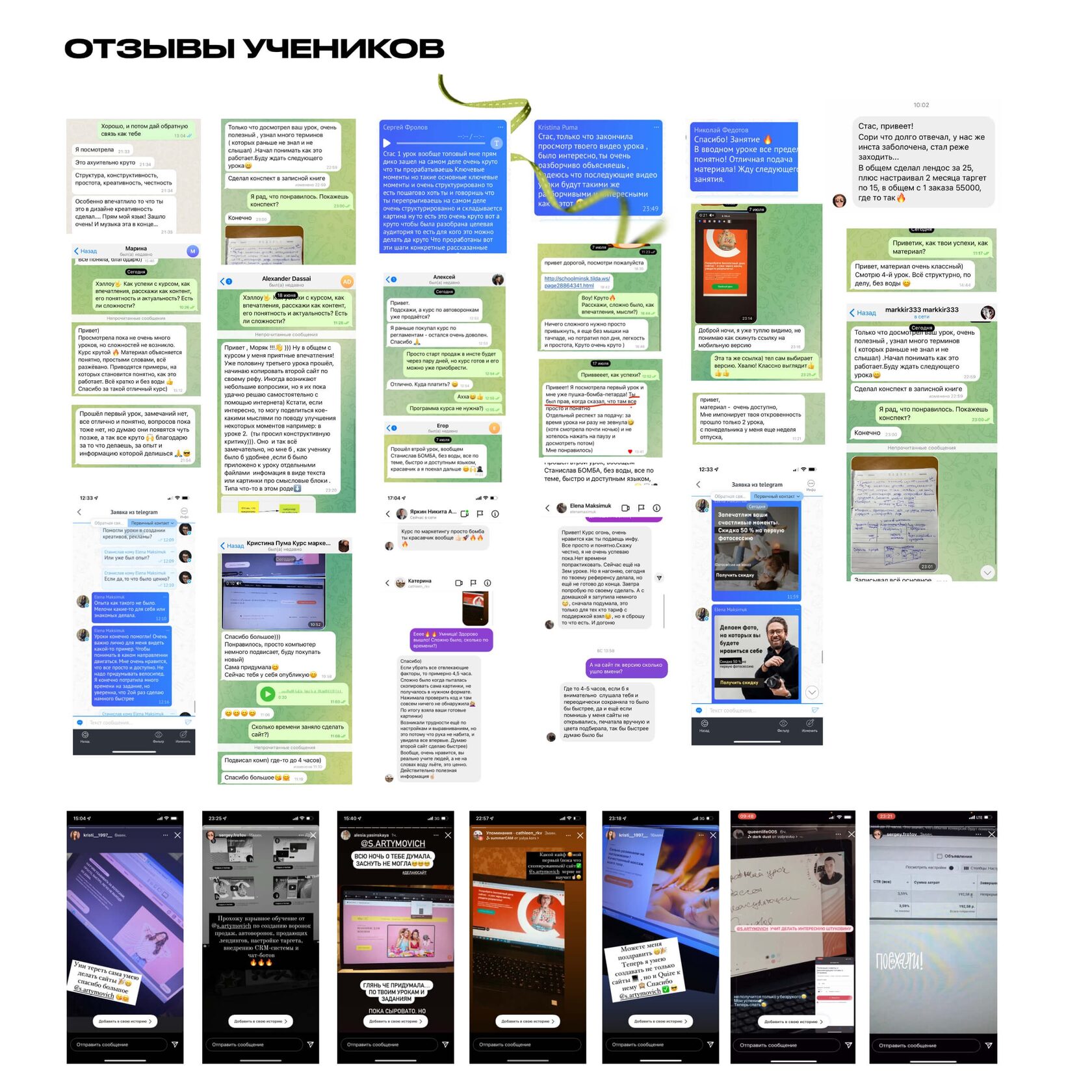 - Личная поддержка Стаса в процессе обучения (телеграм, созвон, zoom, живая встреча)