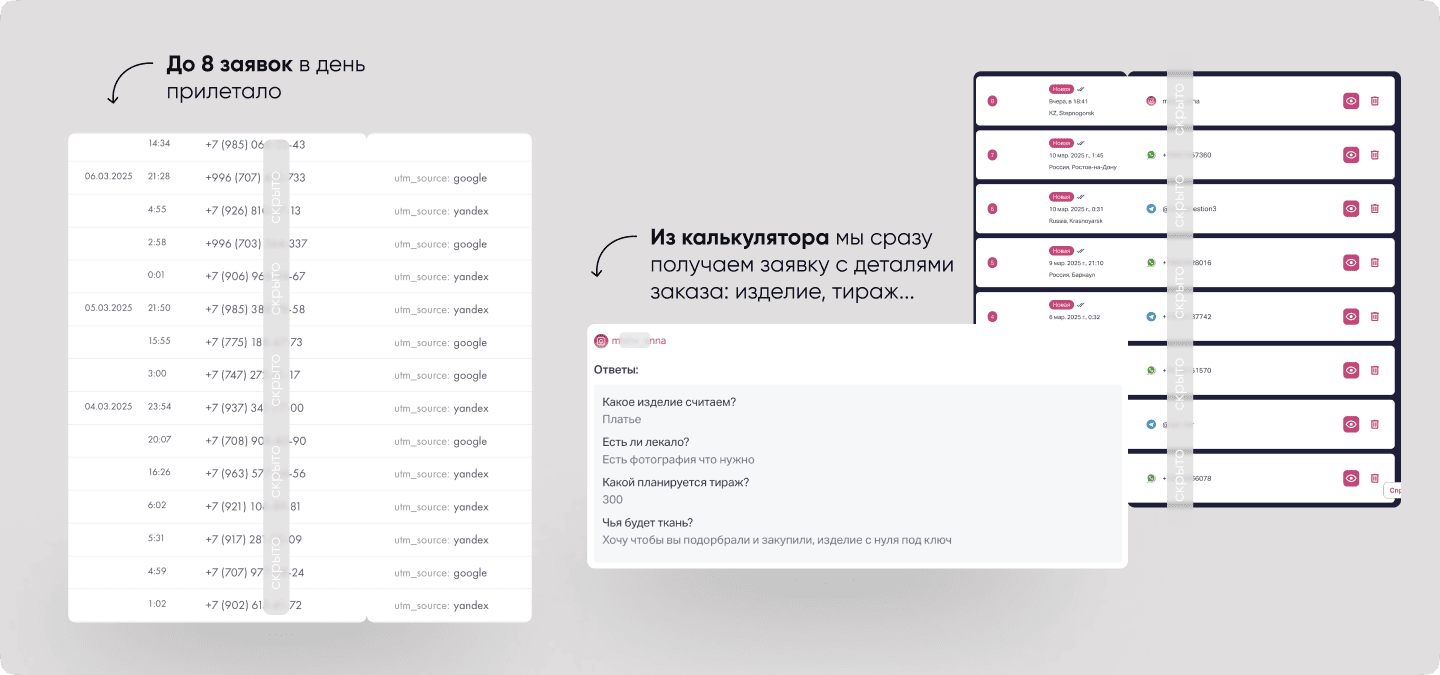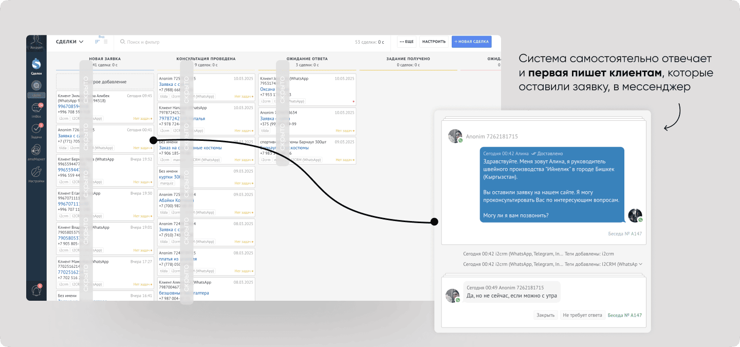 - Всё это дело подключить к AmoCRM для учета заявок и удобной работы с ними
