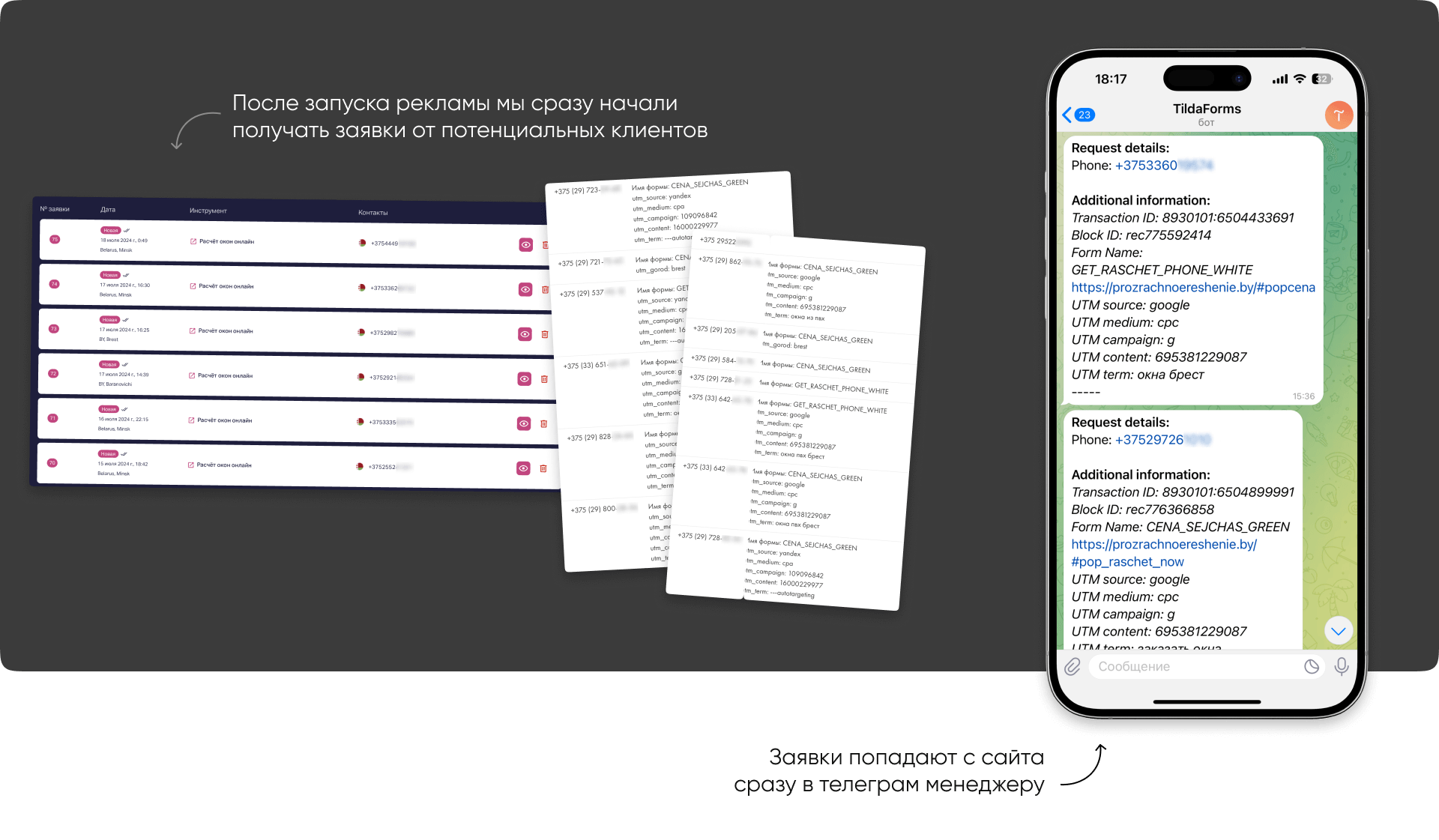 В общем, я подключил сайт к телеграму клиента, чтобы можно было оперативно связываться с клиентами. Пополнили бюджеты на рекламу на 50$ и запустились.